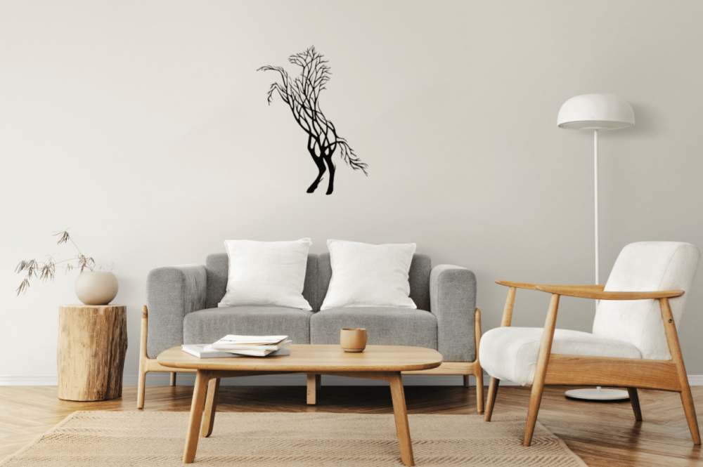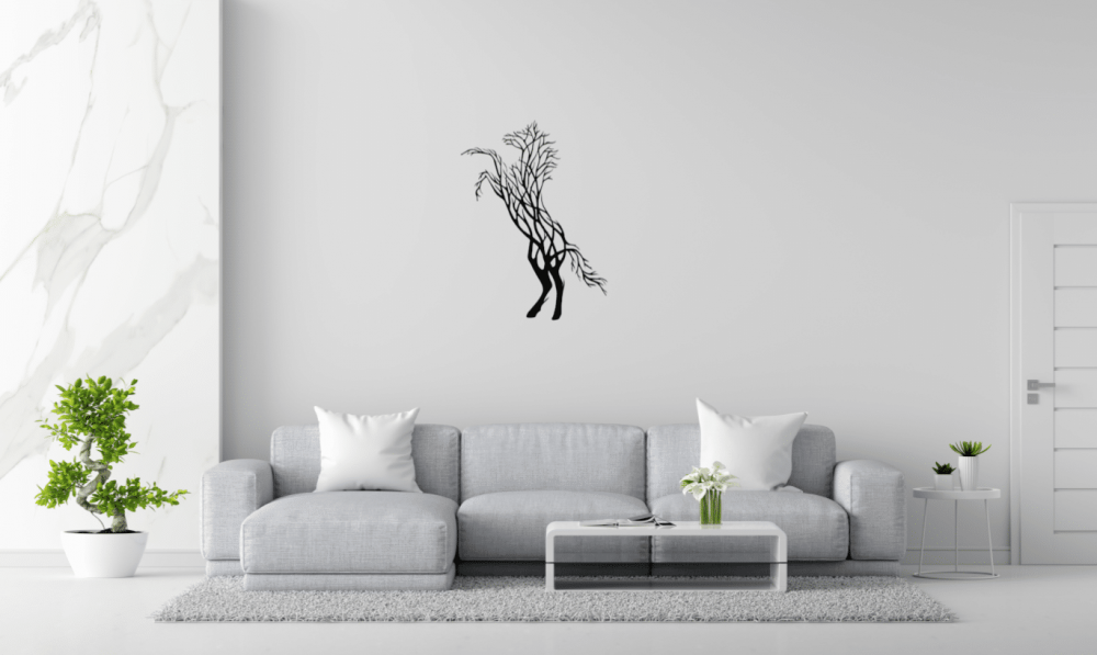 Apportez une touche de puissance et de poésie à votre intérieur avec la décoration murale en métal « Puissant Arbre Cheval Cabré ». Ce design unique représente un cheval cabré dont le corps se transforme en un arbre majestueux, symbolisant l'union entre la force animale et la nature. Idéale pour sublimer votre salon, votre bureau ou votre espace de méditation, cette pièce unique crée une ambiance sereine et inspirante.