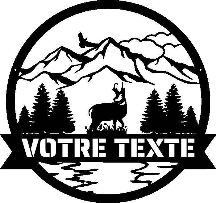Transformez votre espace avec la décoration murale en métal « Ambiance de montagne à personnaliser ». Ce design épuré et stylisé capture l'essence des paysages alpins, offrant une silhouette de montagne majestueuse sur fond de forêt, le tout encadré par un cercle élégant. Personnalisez-le avec votre texte pour créer une œuvre unique qui raconte votre histoire.