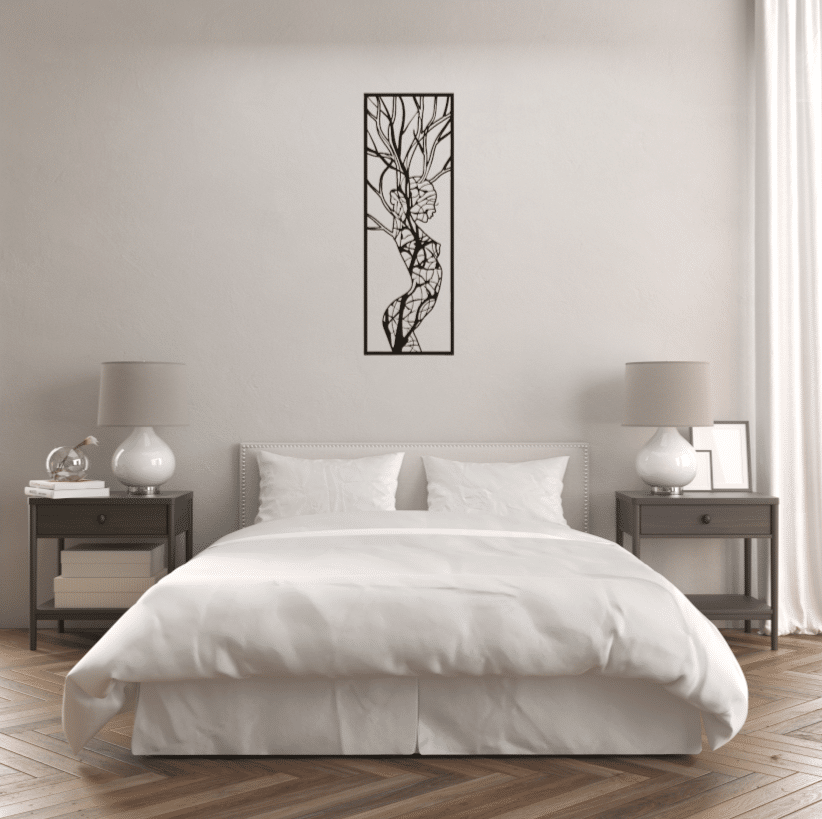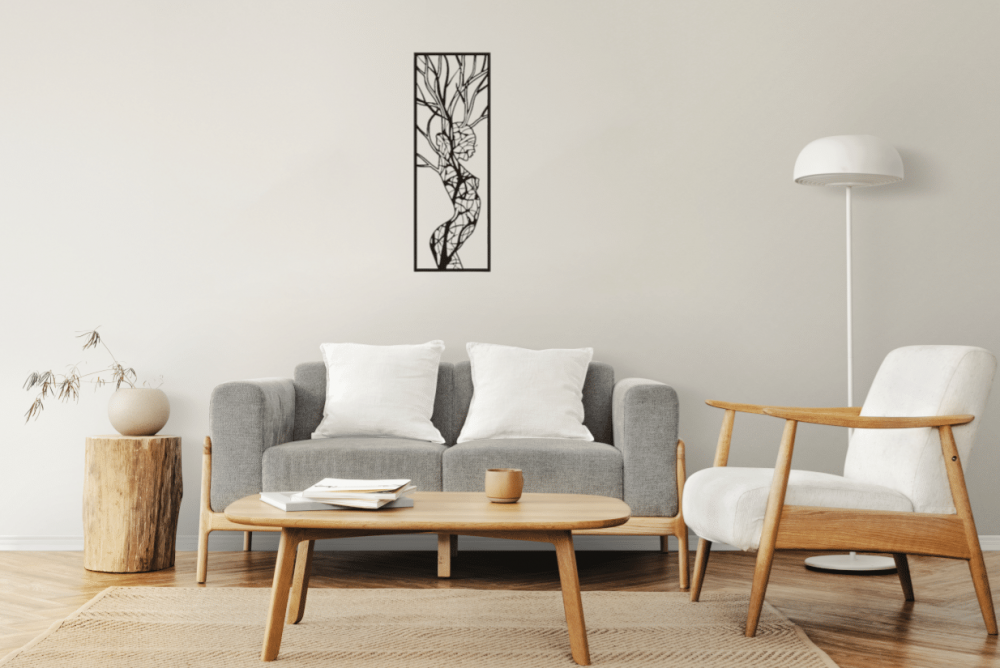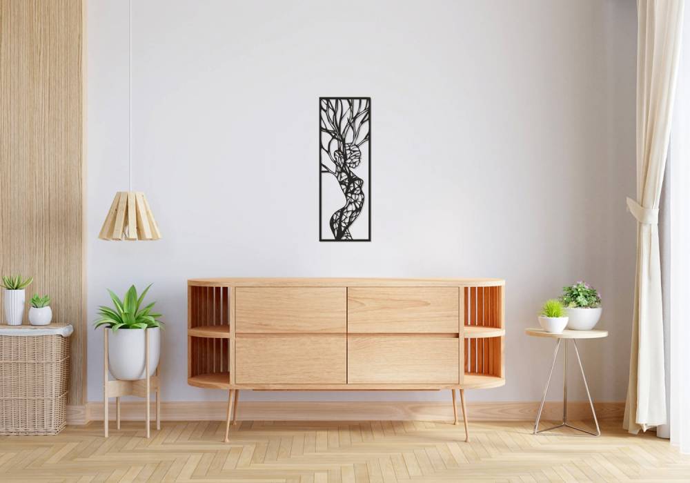 Apportez une touche d'élégance et de symbolisme à votre intérieur avec la décoration murale en métal « Majestueuse Arbre Femme ». Ce design épuré et féminin représente une silhouette féminine dont les bras se transforment en branches d'arbre, illustrant l'harmonie entre l'humain et la nature. Idéale pour sublimer votre salon, votre chambre ou votre espace de méditation, cette pièce unique crée une ambiance sereine et inspirante.