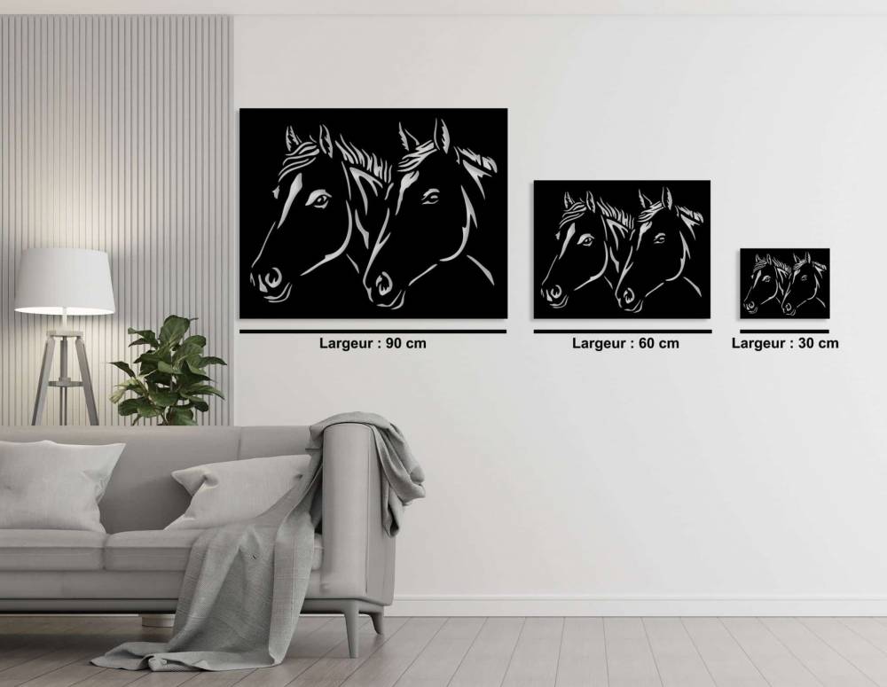 Apportez une touche d'élégance et de complicité à votre intérieur avec la décoration murale en métal « Cheval Binôme ». Ce design épuré et raffiné capture l'essence de deux chevaux fusionnant leurs formes, créant une silhouette harmonieuse et pleine de poésie, idéale pour sublimer votre salon, bureau ou chambre.