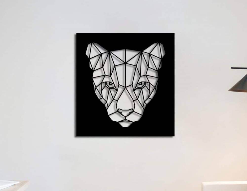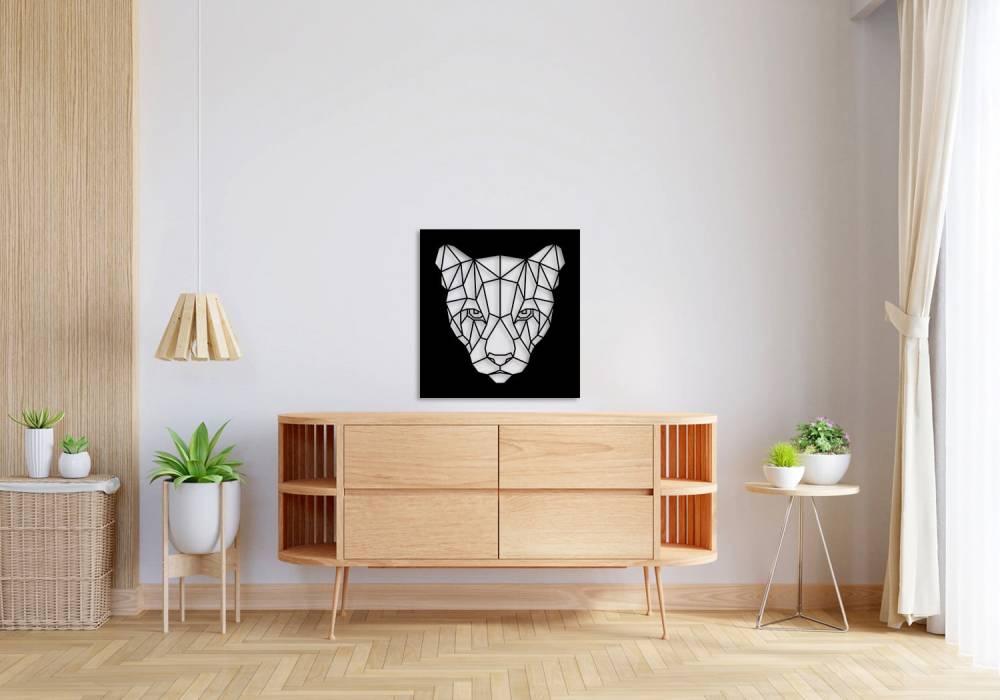 Apportez une touche de caractère et de mystère à votre intérieur avec la décoration murale en métal « Tête de panthère ». Ce design géométrique et épuré capture l'essence du regard perçant de la panthère, créant un point focal captivant dans votre salon, bureau ou chambre.
