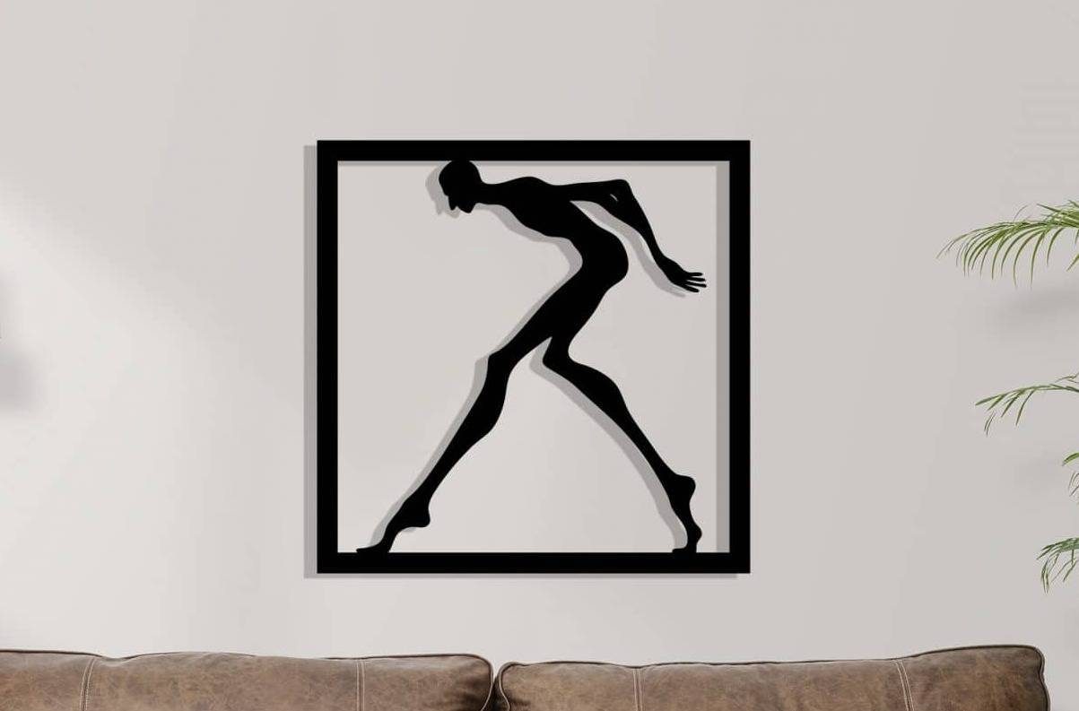 Élevez l’ambiance de votre salon, chambre ou bureau avec la décoration murale en métal « Long John : homme courbé ». Son design épuré et contemporain évoque la silhouette élancée d’un homme en mouvement, créant un point focal artistique et raffiné dans votre espace de vie.