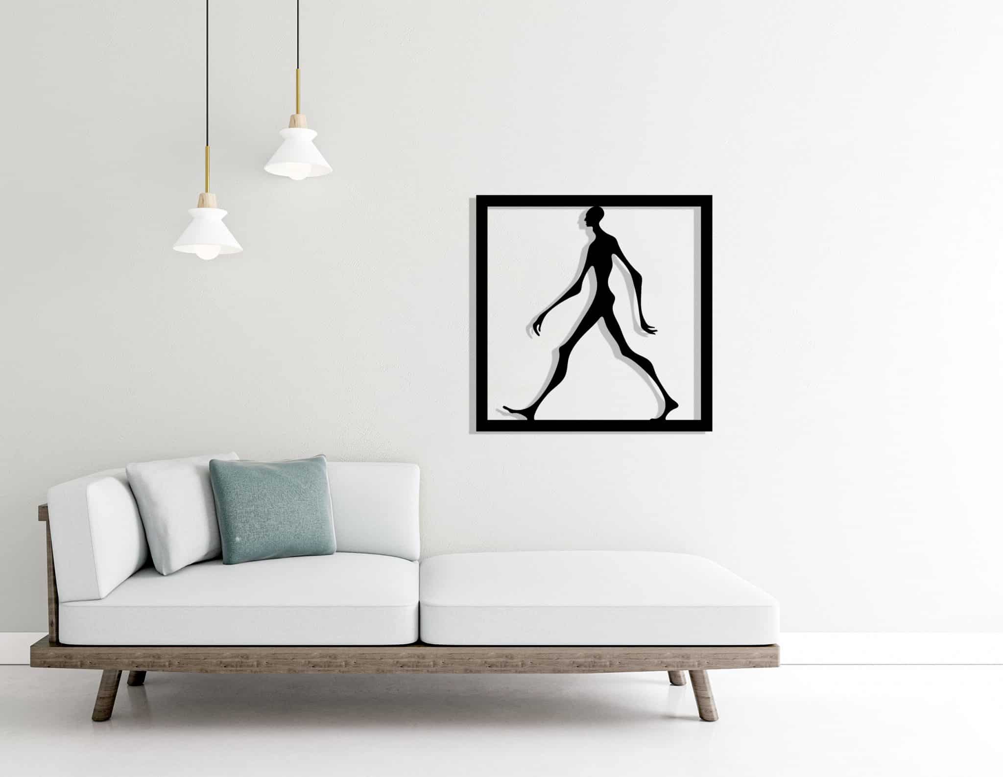 Élevez l’ambiance de votre salon, chambre ou bureau avec la décoration murale en métal « Long John : homme en marche ». Son design épuré et dynamique évoque la fluidité du mouvement humain, créant un point focal contemporain et inspirant dans votre espace de vie.