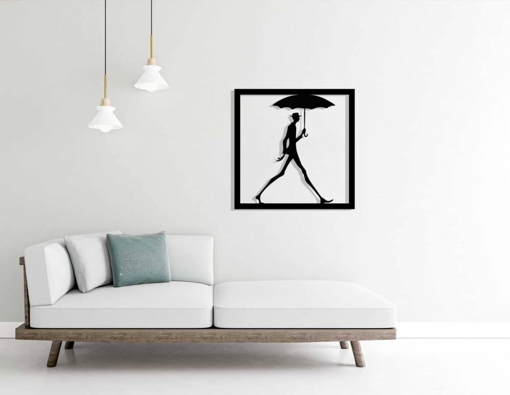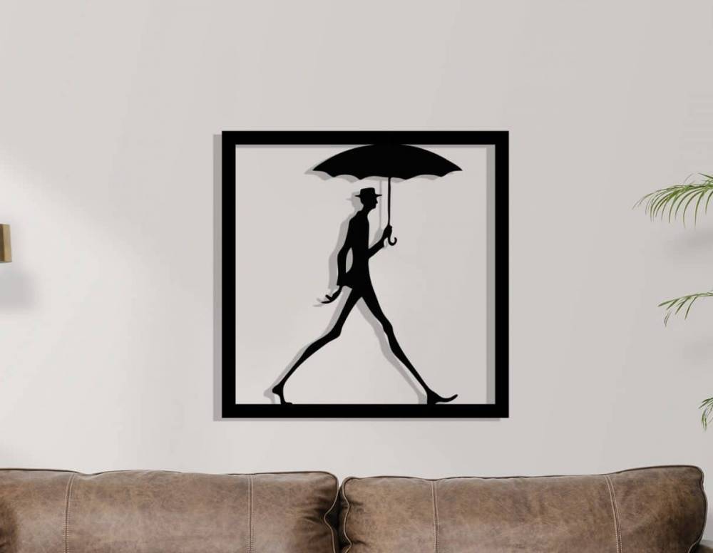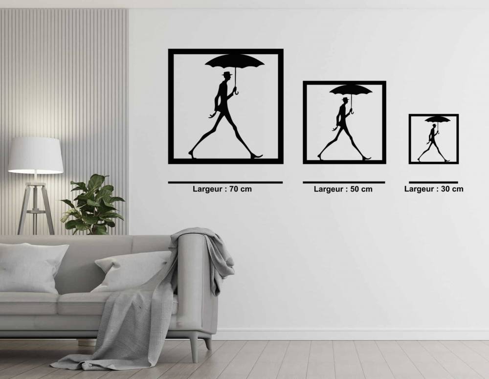 Élevez l’ambiance de votre salon, chambre ou bureau avec la décoration murale en métal « Long John : homme au parapluie ». Son design épuré et élégant évoque la silhouette d'un homme marchant sous la pluie, créant un point focal raffiné et poétique dans votre espace de vie.