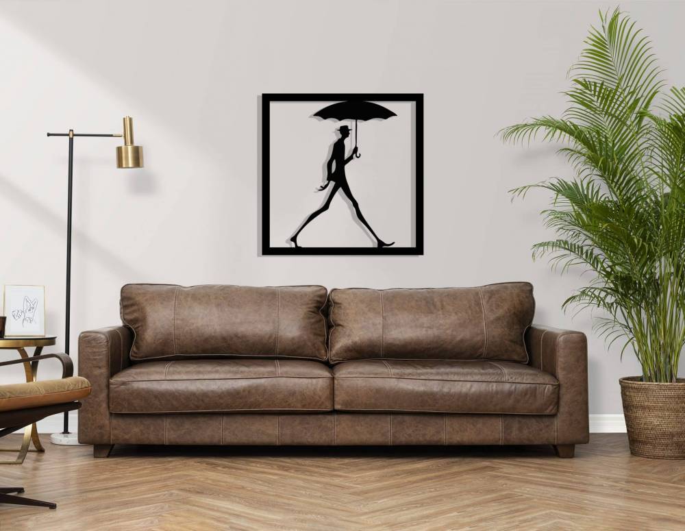 Décoration murale en métal : Long John : homme au parapluie